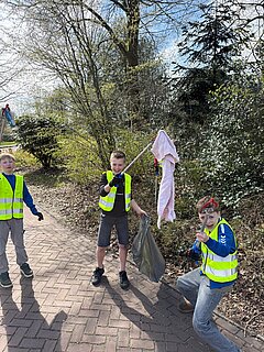 Daarna trokken de leerlingen in groepjes de wijk in om zwerfafval op te ruimen. Met vuilniszakken, handschoenen en afvalknijpers gingen ze fanatiek aan de slag. Met hulp van (groot)ouders is er door de kinderen veel afval verzameld en is Oosteinde weer een stuk schoner geworden.